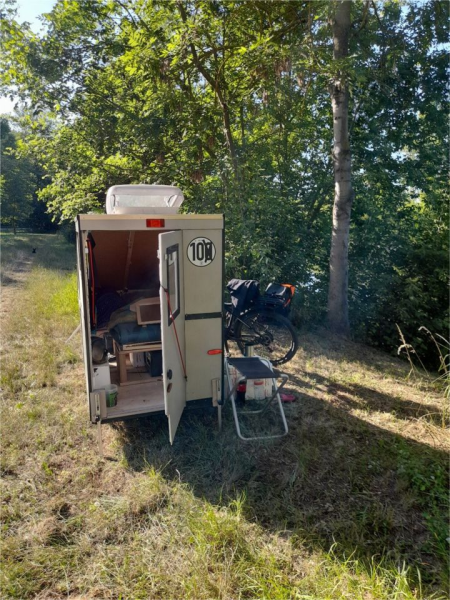 verkaufe hier meinen Fahrradwohnwagen Marke Eigenbau.